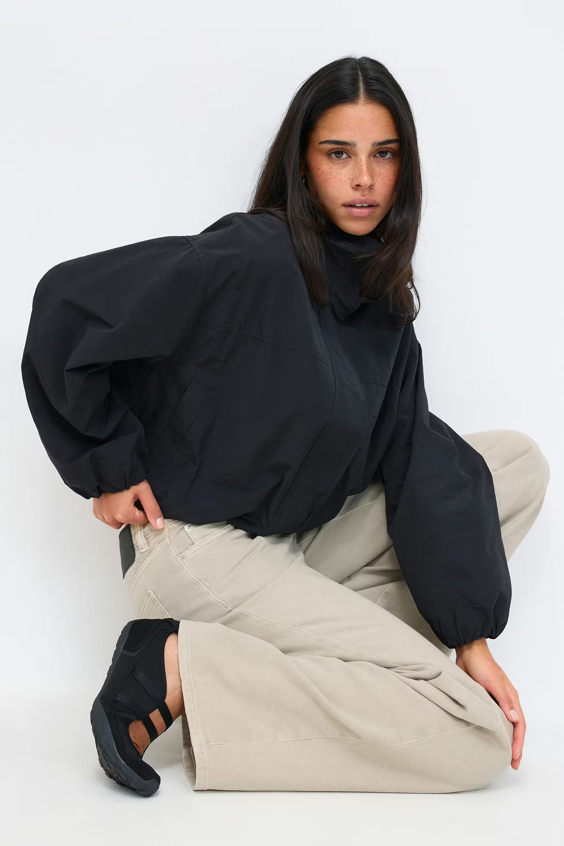 Jean large avec taille basse. Le jean est beige et a des coutures torsadées à...