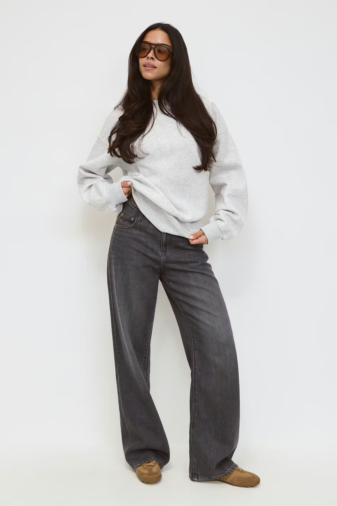 Sweat oversize avec style ample. Le sweat est gris et a encolure bateau. Il a...