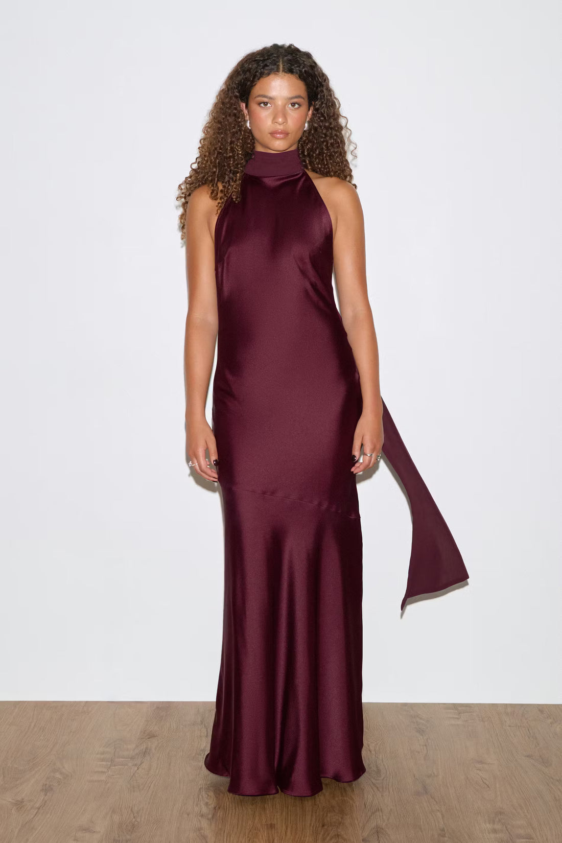 Satin halterneck maxi dress