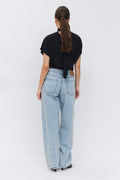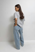 Jean baggy avec jambes extra longues. Le jean est bleu et a taille basse. Il a coupe oversize, braguette, des boucles de ceinture et des poches à l'avant et à l'arrière. Non élastique. Utilisez notre guide des tailles pour trouver celle qui vous convient.