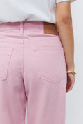 Jean baggy avec taille basse. Le jean est rose et a coupe oversize. Il a braguette, des boucles de ceinture et des poches à l'avant et à l'arrière. Non élastique. Utilisez notre guide des tailles pour trouver celle qui vous convient.