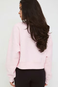 Sweat court avec style ample. Le sweat est rose et a encolure bateau. Il a intérieur brossé doux, des manches longues, des épaules tombantes, des détails de couture décoratifs et revers côtelé aux extrémités des manches et en bas.