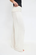 Pantalons de yoga larges en modal avec style ample. Les pantalons de yoga sont blancs et ont taille repliée avec froncements. Ils ont gousset tombant, des jambes larges avec longueur complète et taille mi-haute.