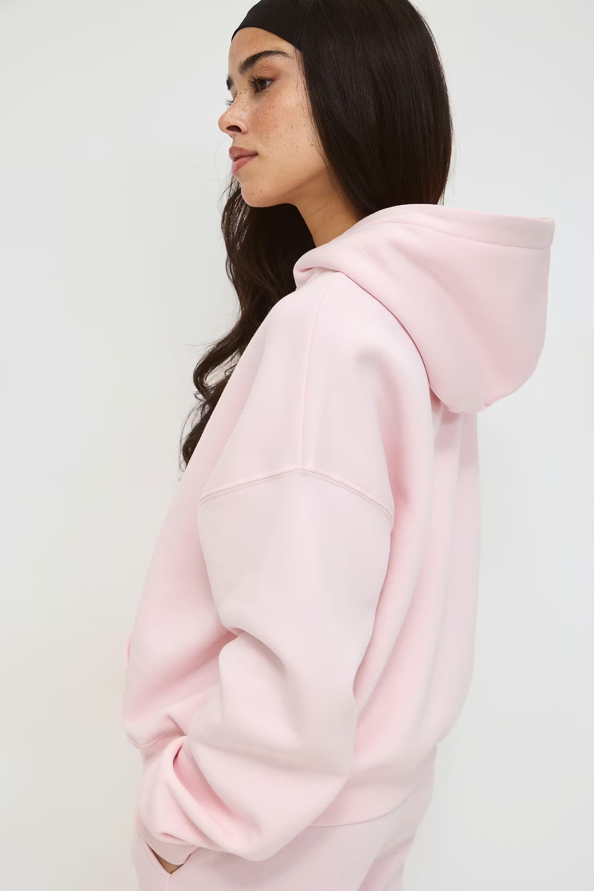 Sweat-shirt à capuche oversize avec poche kangourou à l'avant. Le sweat-shirt à capuche a capuche à doublure avec cordon. Il a des épaules tombantes et nervure à l'extrémité des manches et en bas.