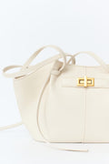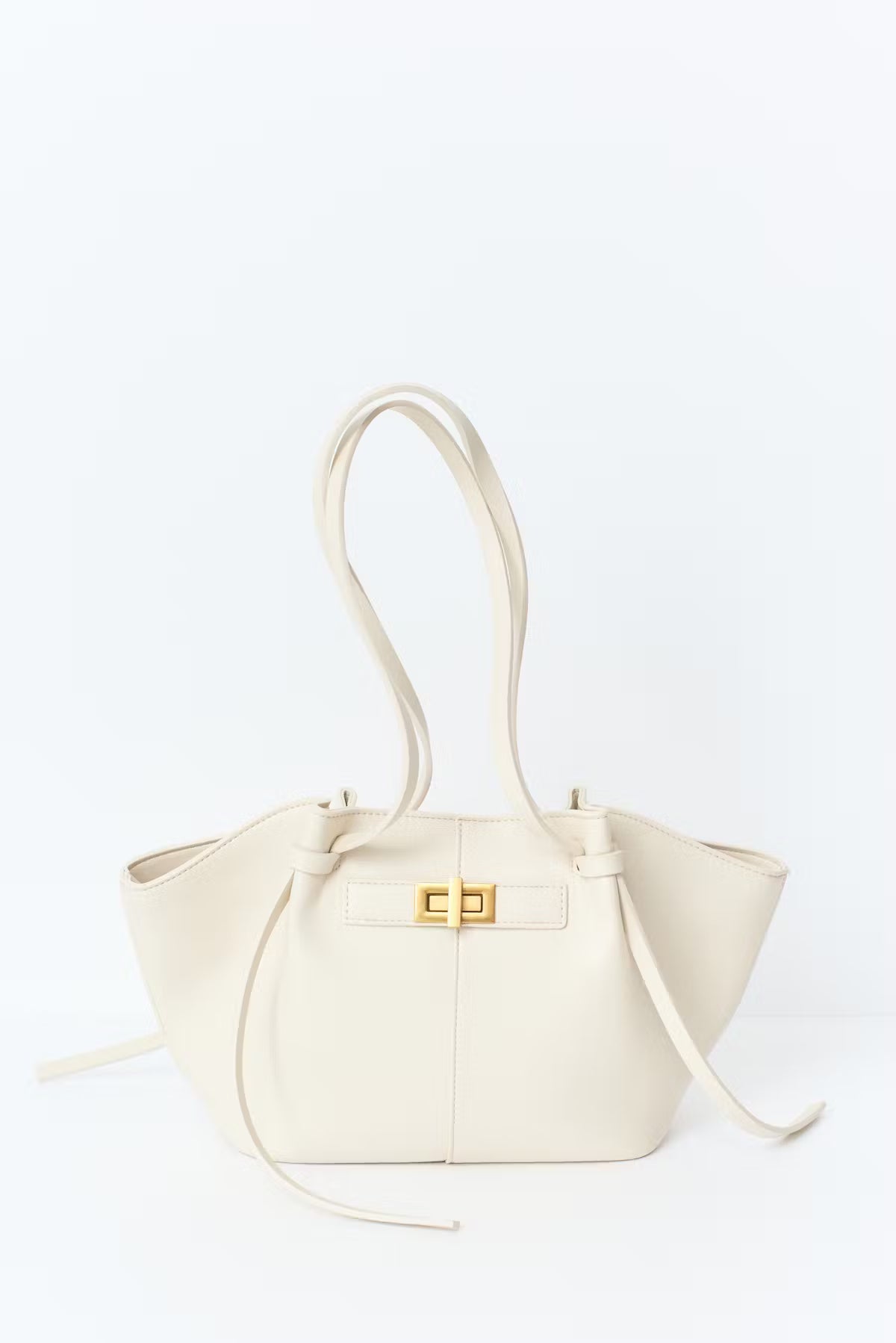 Petit sac en imitation cuir avec doubles poignées. Le sac a boucle argentée. Il a fermeture aimantée et compartiment intérieur.