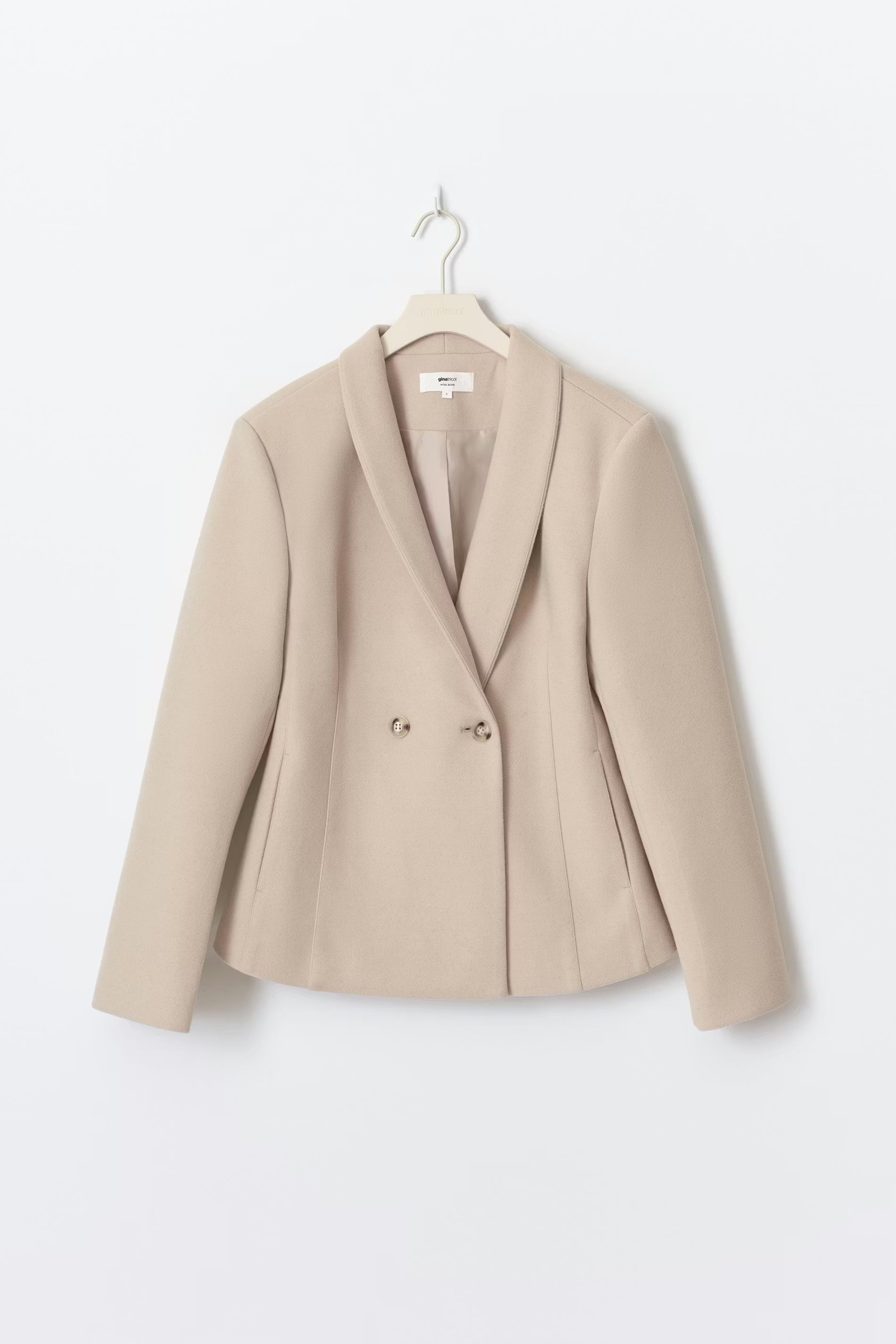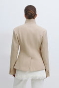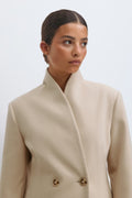 Veste de costume ajustée en mélange de laine avec deux boutons à l'avant. La veste est beige et a coupe slim. Elle a des manches longues, col, des poches sur les côtés, des boutons aux extrémités des manches et fente dans le dos. Entièrement doublée.