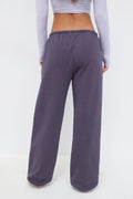 Pantalons de jogging avec ajustable à l'avant. Les pantalons sont violet foncé et ont taille mi-haute. Ils ont des poches sur les côtés et élastique à la taille et au bout des jambes.